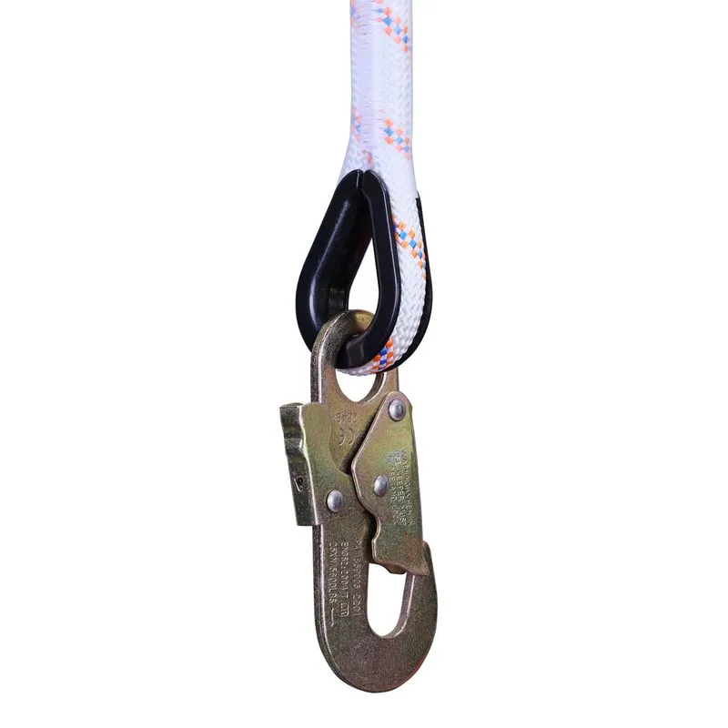 Dotado de mosquetón escala, estructura de doble gatillo de seguridad con garganta amplia de 56mm de apertura para un fácil aseguramiento en diversos tipos de estructuras y de mosquetón de acero forjado de doble gatillo de seguridad para su conexión al arnés.