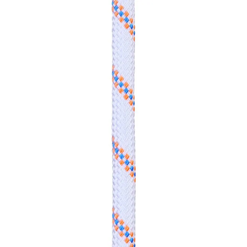 El estrobo está fabricado con cuerda trenzada de poliéster de 12mm de diámetro, protegida con guardacabos plásticos, rematado con una costura automática de seguridad de alta resistencia a la tracción, cubierta con protección plástica termo contraíble para una fácil inspección.