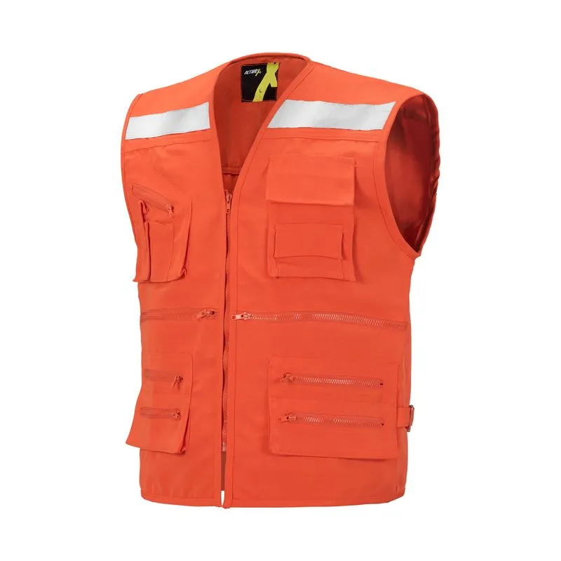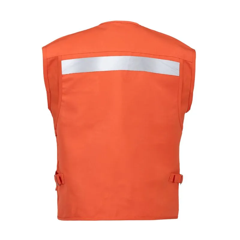 Chaleco geólogo de tela resistente con múltiples bolsillos tipo cargo y con cierre para múltiples dispositivos, bolsillo mapero en la espalda.
