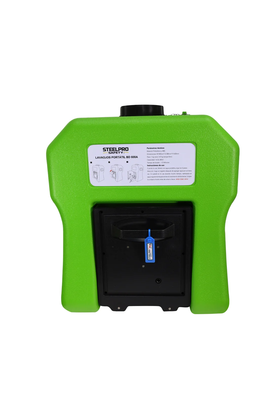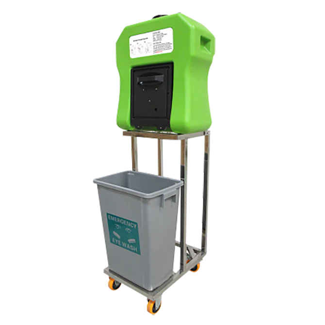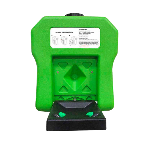 El modelo lavaojos portátil está confeccionado de Polietileno de alta resistencia de color verde, modelo SAS.