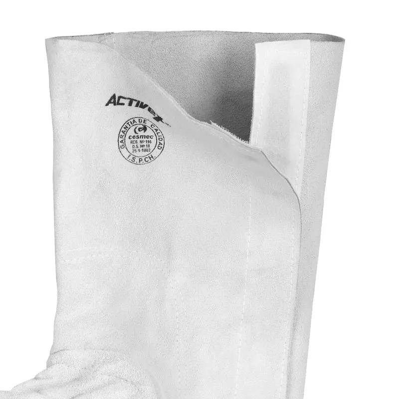 Polaina de protección para soldador, fabricada en cuero flor de primera calidad. Diseño técnico, con costuras resistentes y paños completos de cuero sin costura. Cierres de velcro para mayor comodidad.